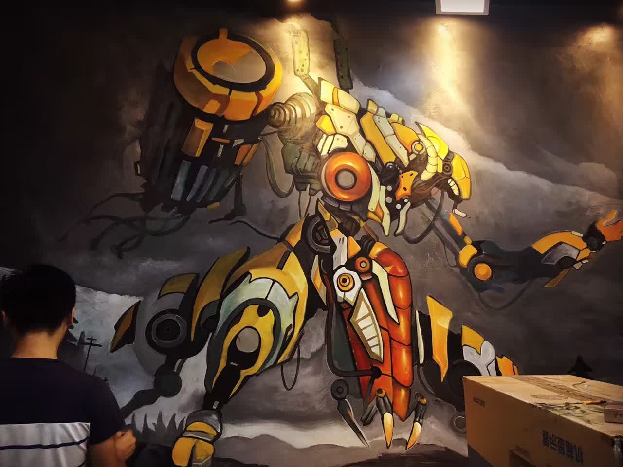▲據說90%的男生都會喜歡機械風格的墻繪