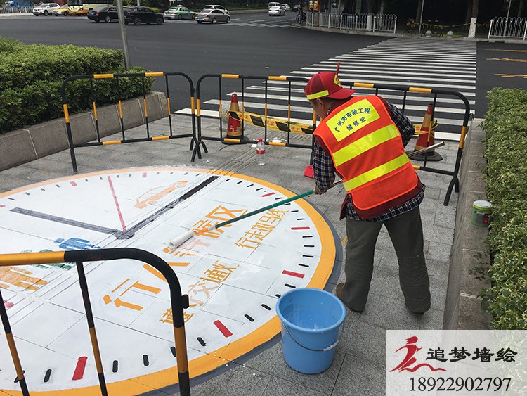 廣州白云國際會議中心附近幾個交叉路口,為迎接財富論壇會議做了一些地畫彩繪涂鴉