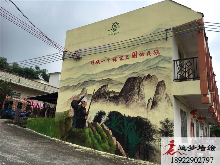 墻繪項目介紹:乳源八一新村墻繪設計,嚴格按照客戶的要求,配合當地的民俗風俗,繪制了生動形象的墻繪。其中墻繪主體都運用了當地的風俗風景等元素,充分體現了人與自然的和諧,歡樂,得到各領導的認可贊許,給追夢墻繪很大的鼓勵.
