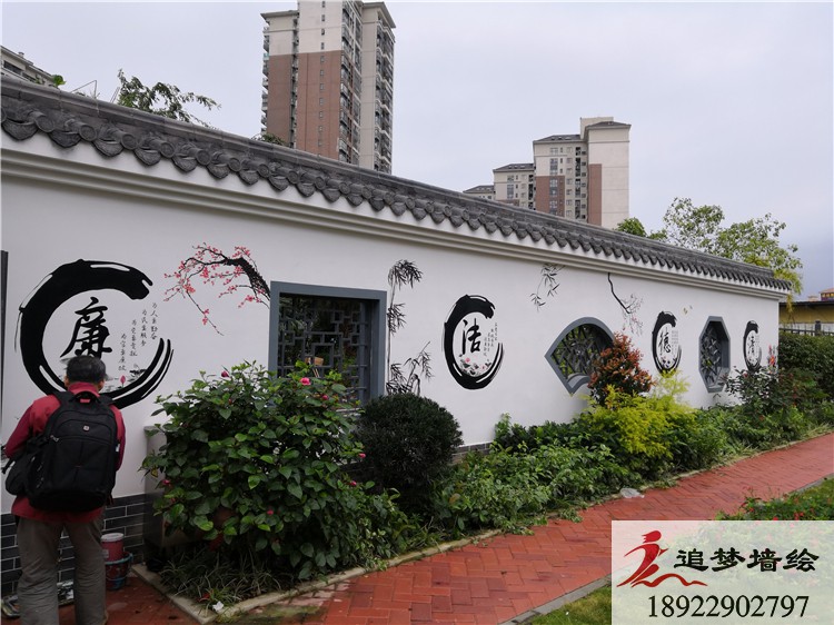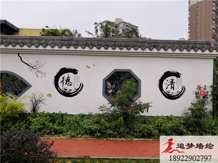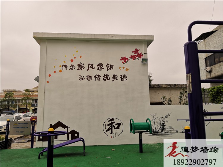 墻繪項目介紹:石排太和社區墻繪設計,運用國畫的繪畫風格體現中華的傳統美德,與社區環境完美融合,得到領導與社區民眾的的認可贊許,給追夢墻繪很大的鼓勵.