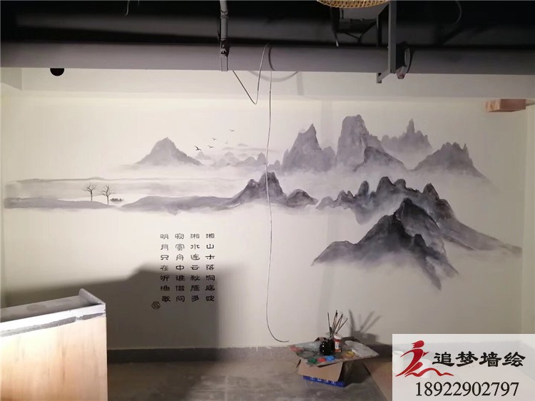 墻繪工程地點(diǎn):廣州墻繪項(xiàng)目介紹:從餐廳的特色出發(fā),將餐廳主打的湘菜用國(guó)畫形式表現(xiàn)出來(lái),讓每副各具特色的水墨畫面融恰的待在同一個(gè)空間里。