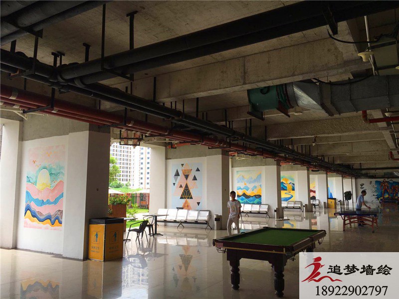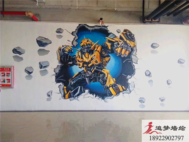 此次彩繪工作的主要內容為“科技”“創新”以及“時尚”。為此,本司專門設計了具有超前科技感的3D科技畫以及古風平面畫。為了迎合宿舍樓“男女有別”的畫風,在選擇彩繪內容時,也進行了一些調整。其中選擇了男生比較喜歡的“鋼鐵俠”“大黃蜂”3D墻繪,還有女生比較心儀的“海洋世界”3D以及日漫,古風人物彩繪等。同時,為了突出現代感,還專門設計了一系列的具有現代主義的抽象畫。