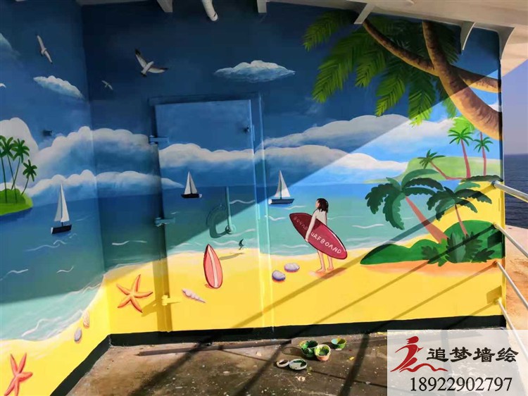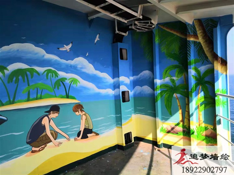 輪船彩繪。在廣西北海,一艘船發(fā)來“支援的信號(hào)”,他們想要讓他們船成為海上“最靚的仔”,想在船的正面的四五層繪畫一些東西。于是就和我們追夢墻繪展開了合作,經(jīng)過一天交流后,我們確認(rèn)了主題,就打算畫一些有種沙灘度假的感覺的畫面。由于風(fēng)格和畫面不是說明的很詳細(xì),我們修修改改了好幾次,客戶也一直跟進(jìn)的添加一些東西,最后終于確認(rèn)好了,我們畫師就馬上到北海去上船繪畫。在海上的風(fēng)景很漂亮,黃昏時(shí)的夕陽更是美得不像話。經(jīng)過四五天的奮斗,這些藍(lán)天白云、海鷗、椰樹海島、沙灘休閑等等的畫面就一一呈現(xiàn)出來了。這次的方案雖然有些曲折,但還是完美的搞定了。