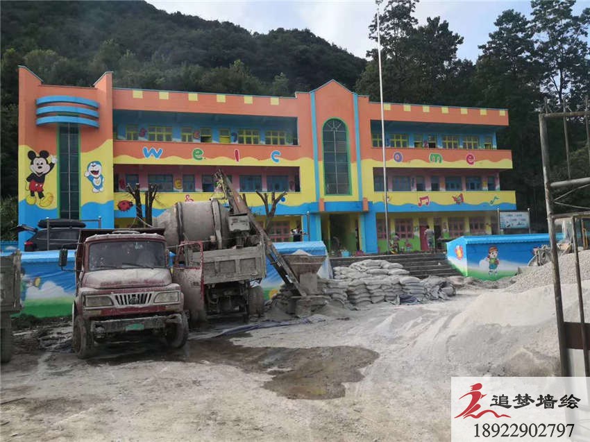墻繪項目介紹:江夏幼兒園墻體彩繪為外墻墻體彩繪,是該幼兒園的形象墻,以小朋友的卡通形象,字母音符為主要元素,突出了幼兒園的活躍氣氛,用小朋友都能接受的可愛風格。墻繪整體基調用鮮艷的色彩搭配,為小朋友營造活潑的學習玩樂的氛圍。完工以后得到極大地認可!
