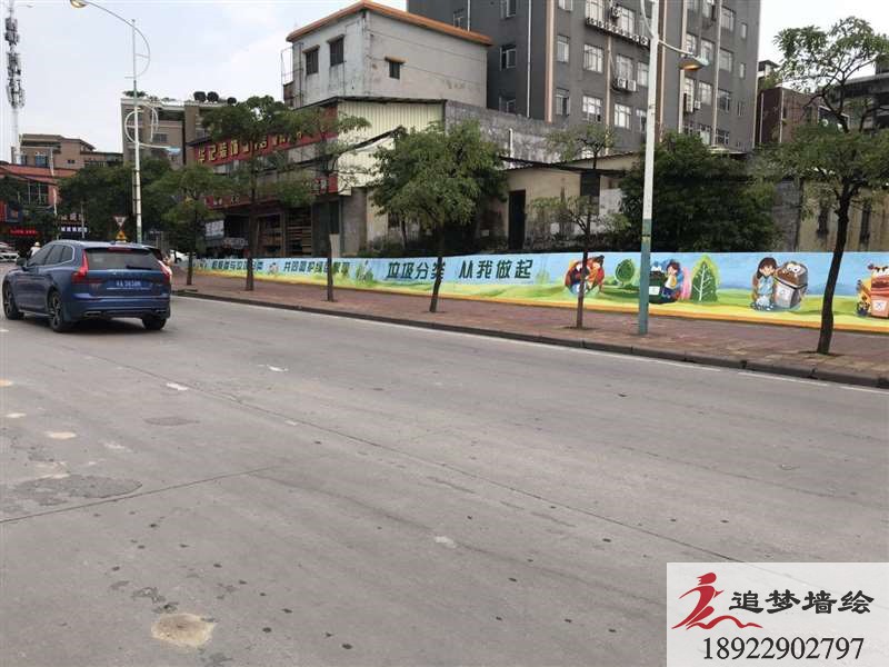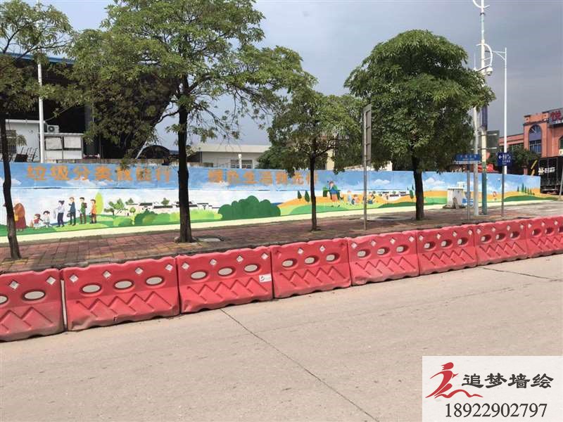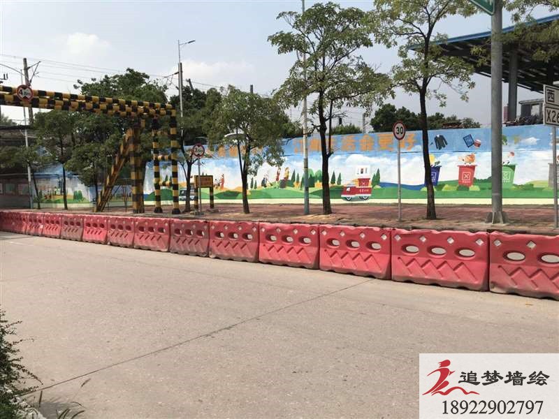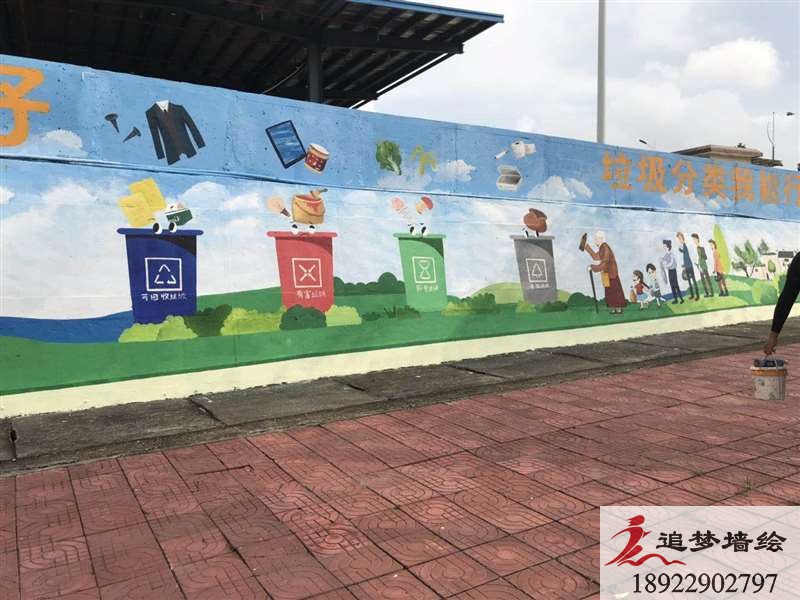 墻繪項目介紹: 江高這個的項目主要繪制彩繪圖案整體設(shè)計圍繞“垃圾分類我能行,綠色生活”主題,突出美化環(huán)境的主題。圖案是以可愛的卡通戶外青山人物與色塊相比較的垃圾分類桶為主,采用圖文結(jié)合的表現(xiàn)形式。墻繪整體基調(diào)可愛、有趣,突出了垃圾分類的主題。