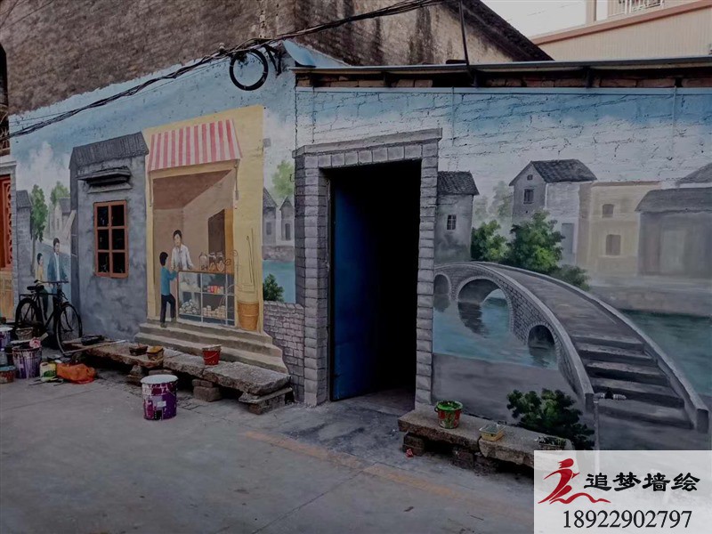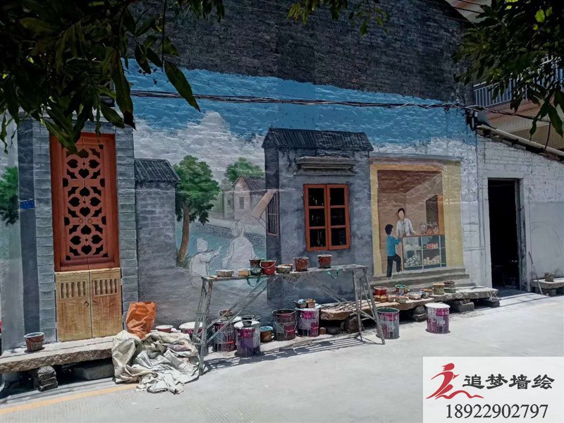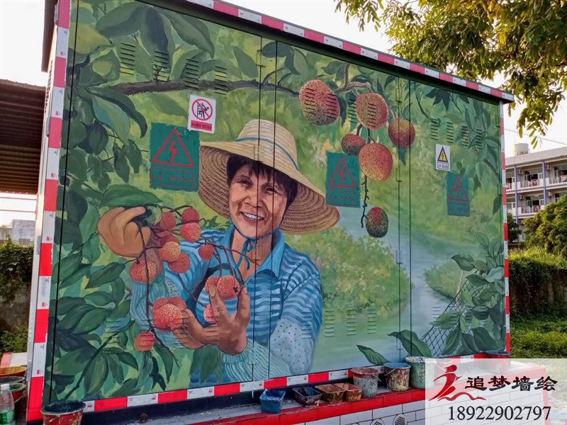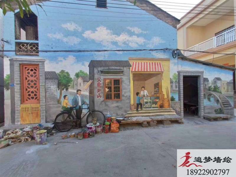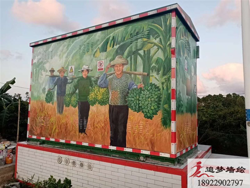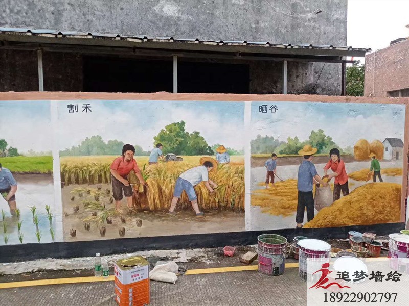 墻繪項目介紹: 小欖這個項目的彩繪在不同的墻面設計不同的彩繪圖案。圖案整體設計圍繞美麗鄉村為主題,用各種各樣和諧的鄉村農耕場景把畫面做的精彩生動,色調明快,協調統一,展示了符合鄉村氣息的內容。