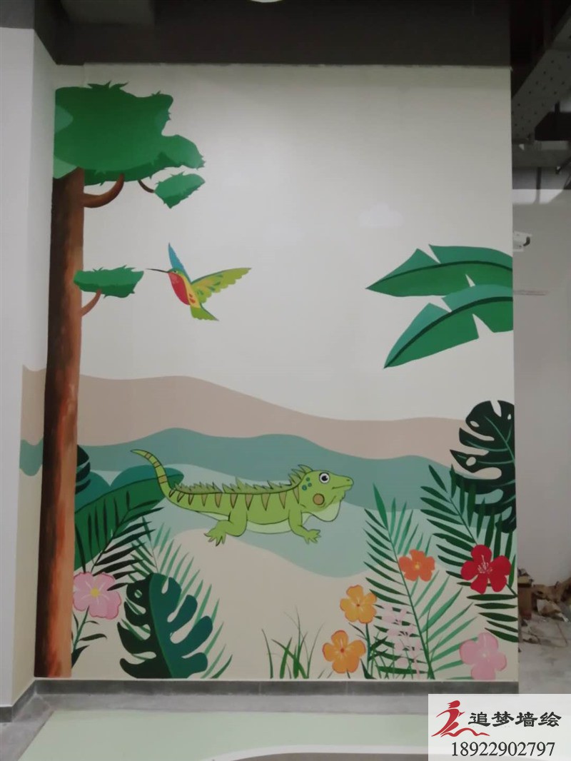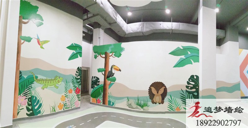 墻繪項目介紹:珠海融創這個項目的彩繪在不同的墻面設計不同的彩繪圖案。我們設計師以彩繪風格為主,用各種各樣和諧的卡通場景把畫面做的精彩生動,色調明快,協調統一,突出了自然。墻繪整體基調樂觀積極向上。