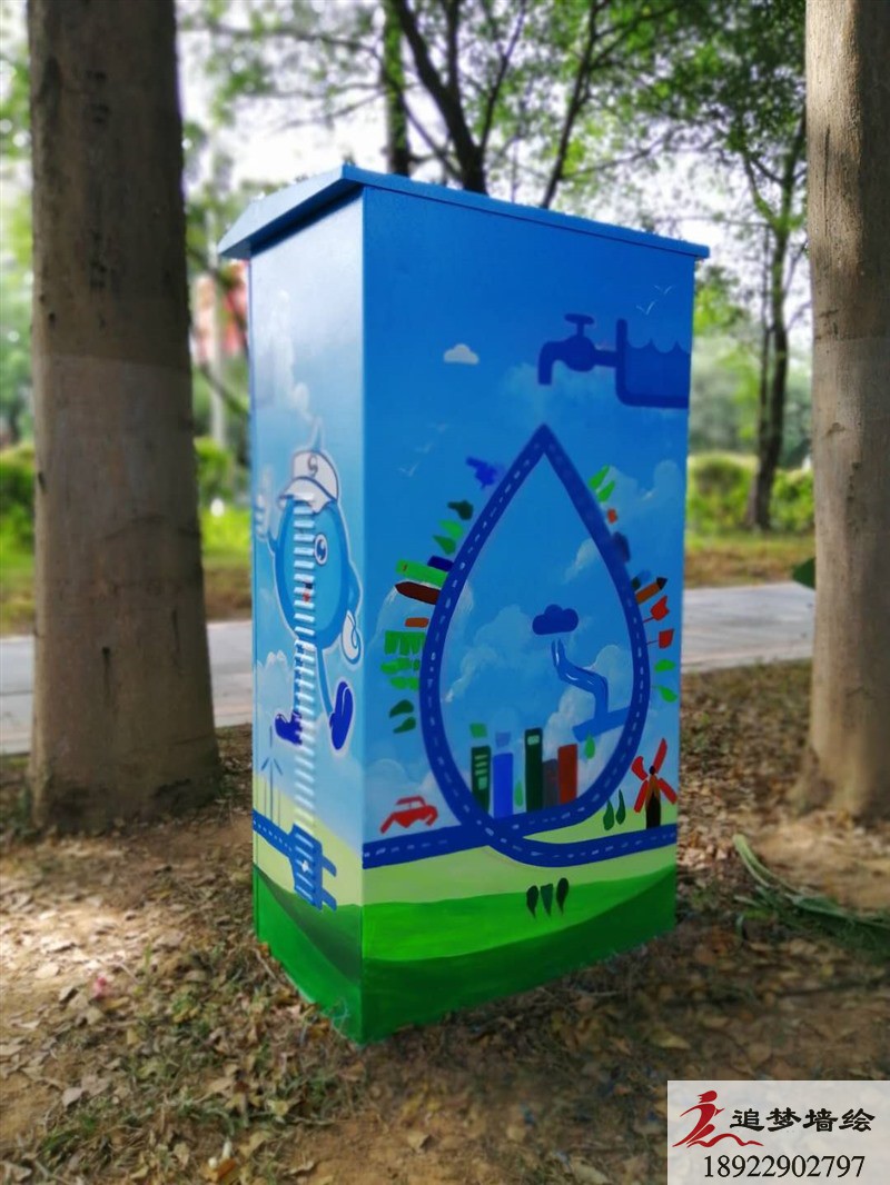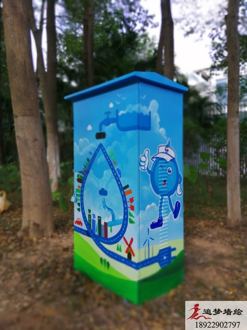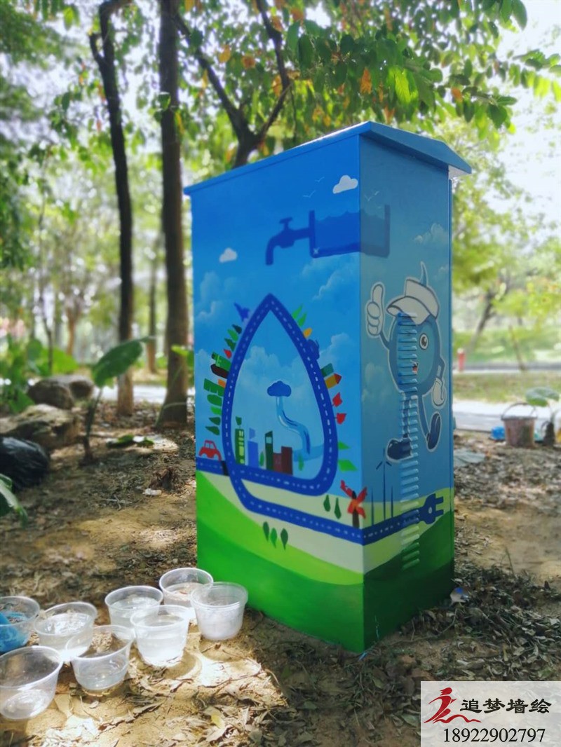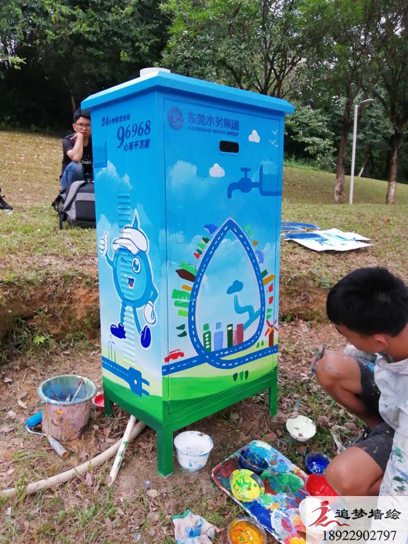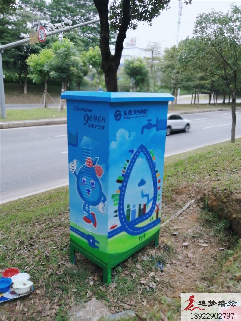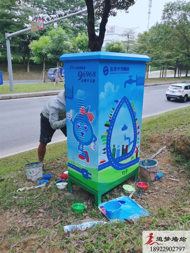 墻繪項目介紹: 松山湖這個項目的彩繪在電箱上設計不同的彩繪圖案。我們設計師以卡通風格為主,用和諧的卡通場景把畫面做的精彩生動,色調明快,協調統一,采用圖文結合的表現形式,突出了卡通風格基調樂觀積極向上的內容。