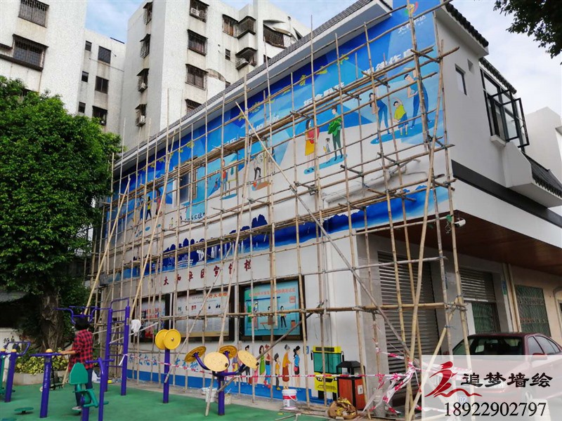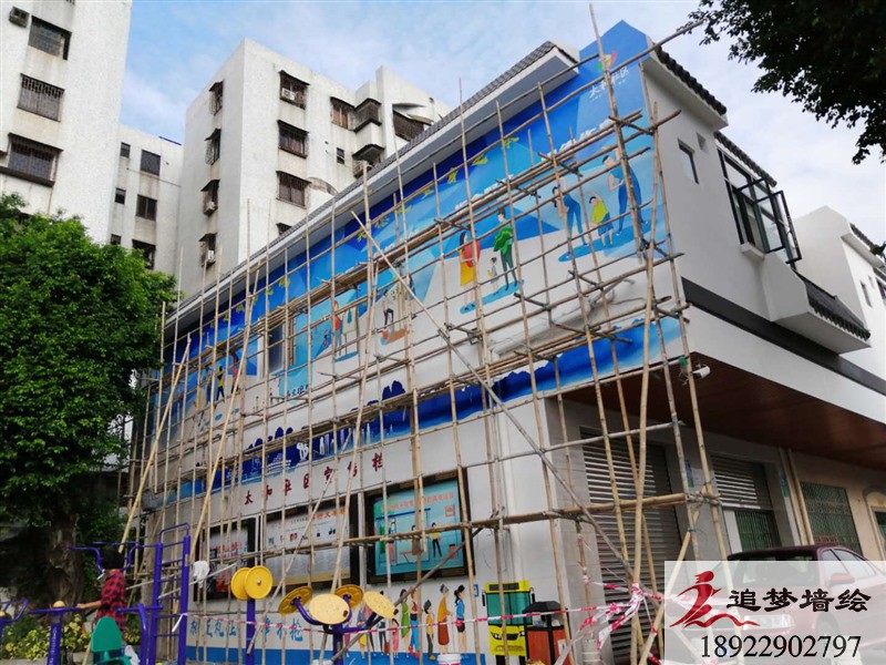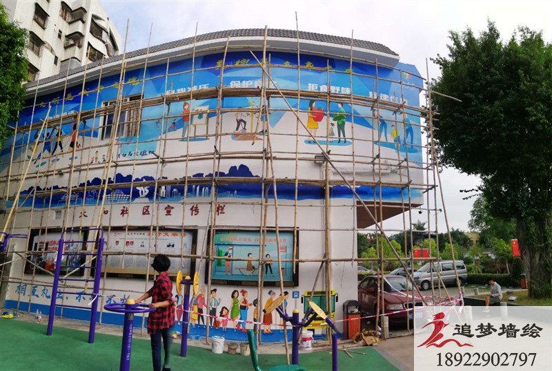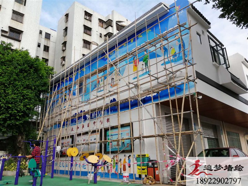 墻繪項目介紹: 東莞石排這個項目的墻面。我們設計師以卡通風格為主,以各種卡通元素設計不同的彩繪圖案,用和諧的卡通場景把畫面做的精彩生動,色調明快,協調統一,采用圖文結合的表現形式,突出了卡通風格基調樂觀積極向上的內容。