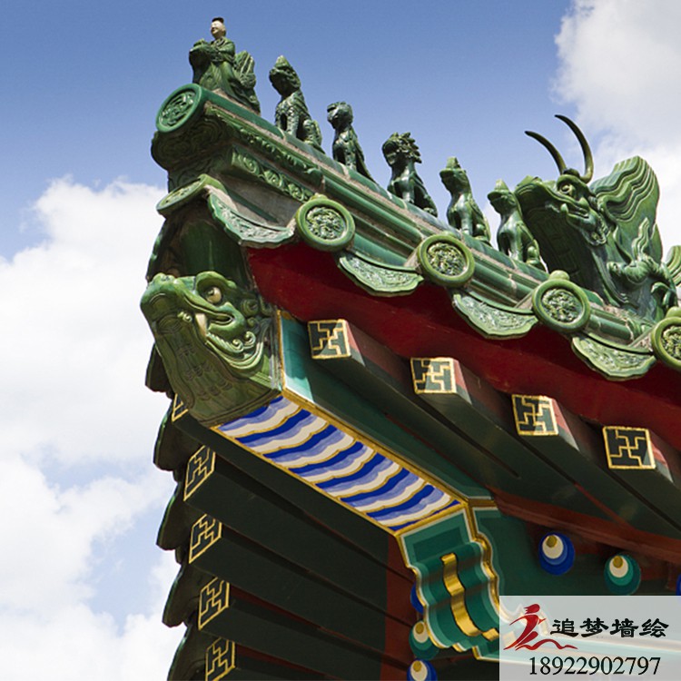 墻繪項目介紹:這個項目的古建筑彩繪是根據(jù)嶺南文化進行彩繪圖案設(shè)計。是由蘇式、旋子、和璽彩畫融合而成的彩繪效果與其他古建筑彩繪風(fēng)格大致一致,卻體現(xiàn)了當(dāng)?shù)靥厣?xí)俗與審美。用豐富色彩把畫面做的精彩生動,色調(diào)明快,協(xié)調(diào)統(tǒng)一,具有地方特色。