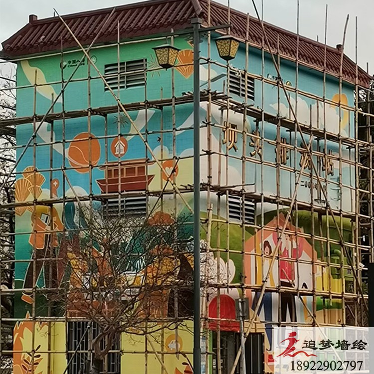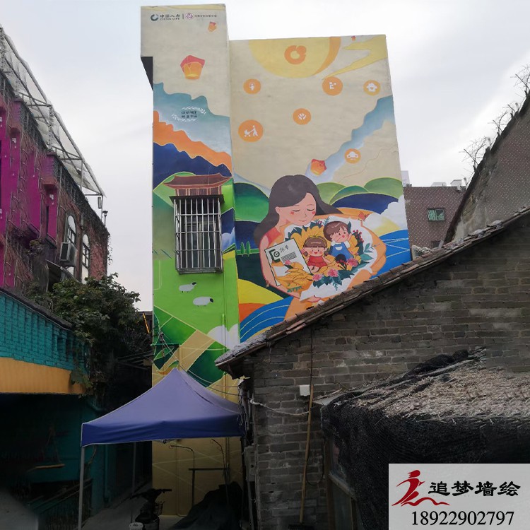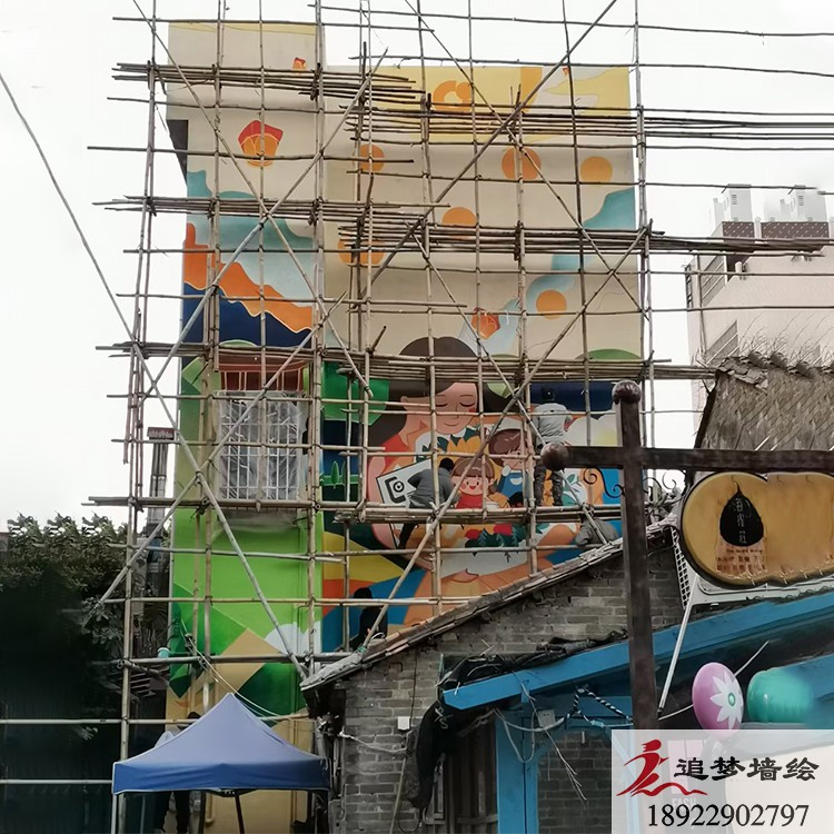 墻繪項目介紹:網紅墻主要繪制彩繪圖案整體設計圍繞視覺效果符合年輕人,突出潮流,鮮明色彩,圖案是以年輕活力的色彩搭配色塊和字母相結合,不規則的圖形和大膽的色彩讓墻繪整體活潑、明快,展示出樂觀積極向上!