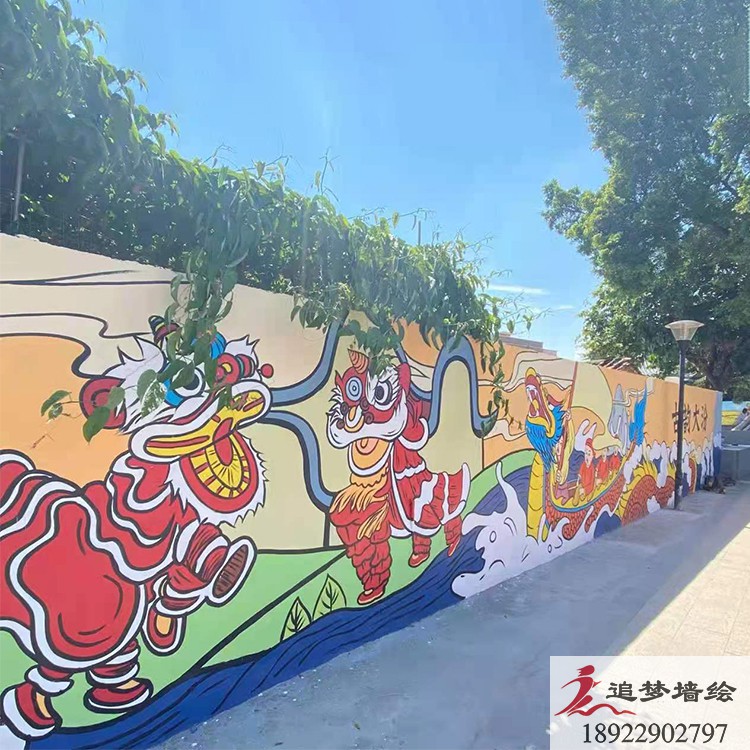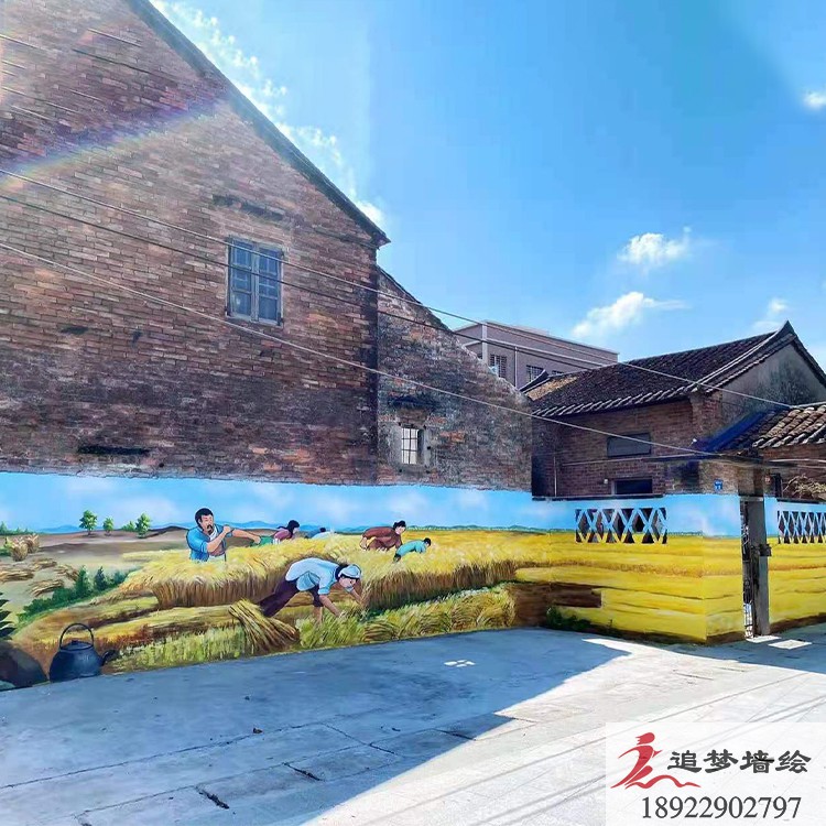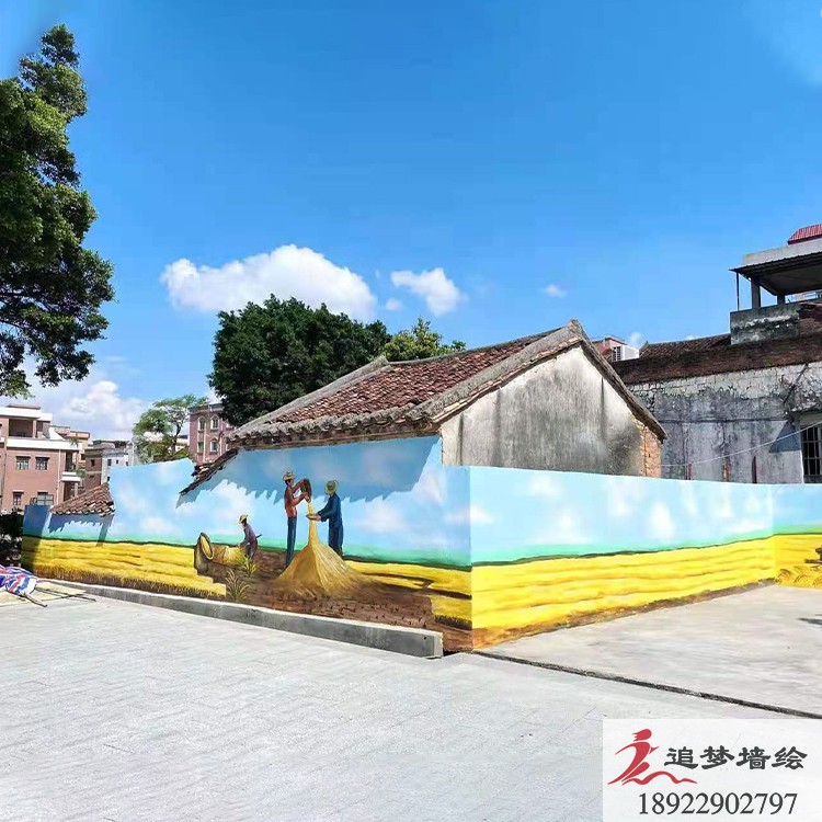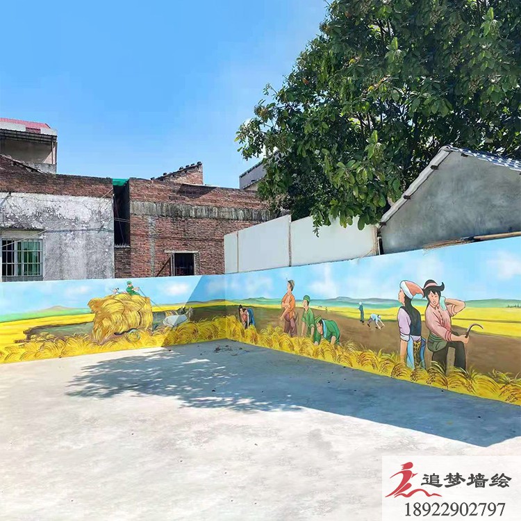 佛山禪城文化墻。關于鄉村文化墻的繪畫,我們畫師繪畫的非常多了,這次繪畫雖然有點多,但對他們來說都是小菜一碟。在鄉村繪畫的時候最關鍵的一點是天氣,這幾天的天氣很好,不下雨又不是很曬,有不少的白云,這樣的天氣很適合在戶外繪畫。就四五天的時間就差不多畫完了,鄉村的文化墻繪畫很多時候都相似的,像農民耕田插秧、青山綠水、本地的建筑房子、黨建文化、鄉村振興這些都是鄉村文化墻繪畫主要內容。這些內容的墻繪我們非常熟悉有經驗的,如有需要請找我們追夢墻繪。