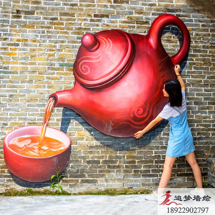 ,這次的鄉村文化墻與其他的有些不一樣,因為這次有3D效果的。3D大象,貓咪,茶壺等等