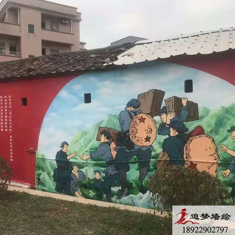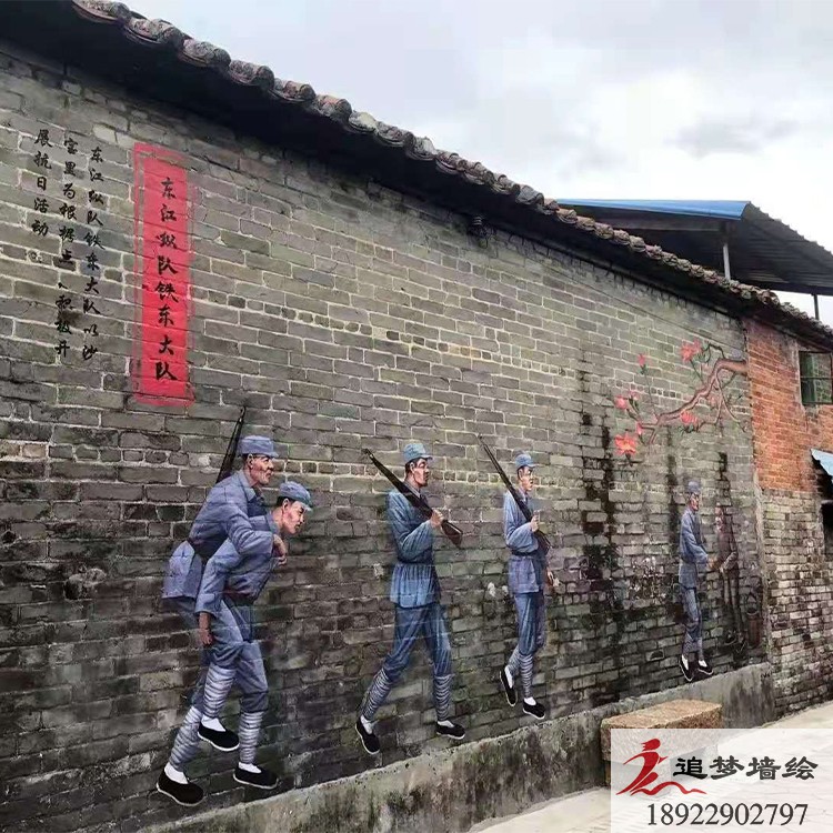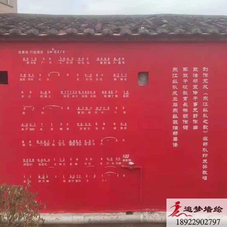 追夢墻繪在謝崗鎮開展工作,為謝崗鎮進行裝飾工作,在墻外上面看到各種抗日戰爭主題,還有戰爭的歌曲與譜子。裝飾完了外墻,我們還外墻的墻繪繪畫上了韻味十足的抗日人物。以下就是一些現場的圖片。